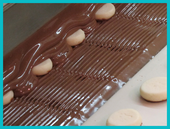 Have you had issues with air pockets showing up on your enrobed confections? This week’s tip is to be sure the chocolate curtain on your enrober is as close as possible to the centers or confections being enrobed to avoid air pockets. If the curtain is too far above your centers, then there is more of an opportunity for air pockets to form.