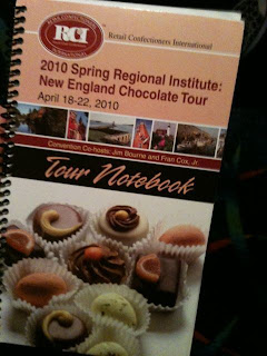 The RCI New England Chocolate Tour notebook includes information about each store.