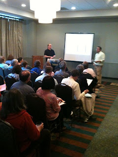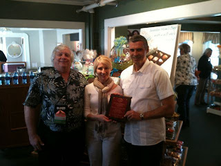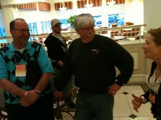 The Tell-N-Sell Reception was a hit, and associate members had the opportunity to highlight their new products to chocolate makers. Laura, from Guittard Chocolate, and Elizabeth, Chocolate Fetish, talked about different chocolate while others sampled the latest flavors in panned goods from Dorothy's Cox's Chocolates. Kristene, Marc, and Pat reconnected while friends met up for dinner. After dinner, some attendees filled the hotel restaurant to watch Candy House Gourmet Chocolates, located in Joplin, MO, be featured on the Kendra Wilkinson show, Kendra, shown on the E! channel.