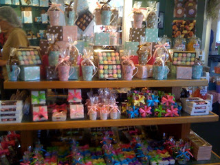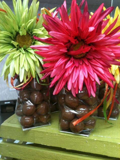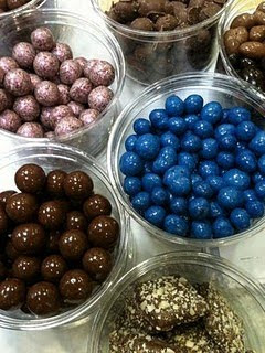 Dorothy Cox's Chocolates show off their panned chocolates in a variety of colors.