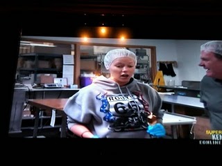 Kendra Wilkinson learns to dip chocolate at Candy House, Joplin, MO.