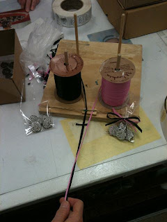The packing wheel slowly rotates so the assorted boxes can by hand-packed by Cheryl