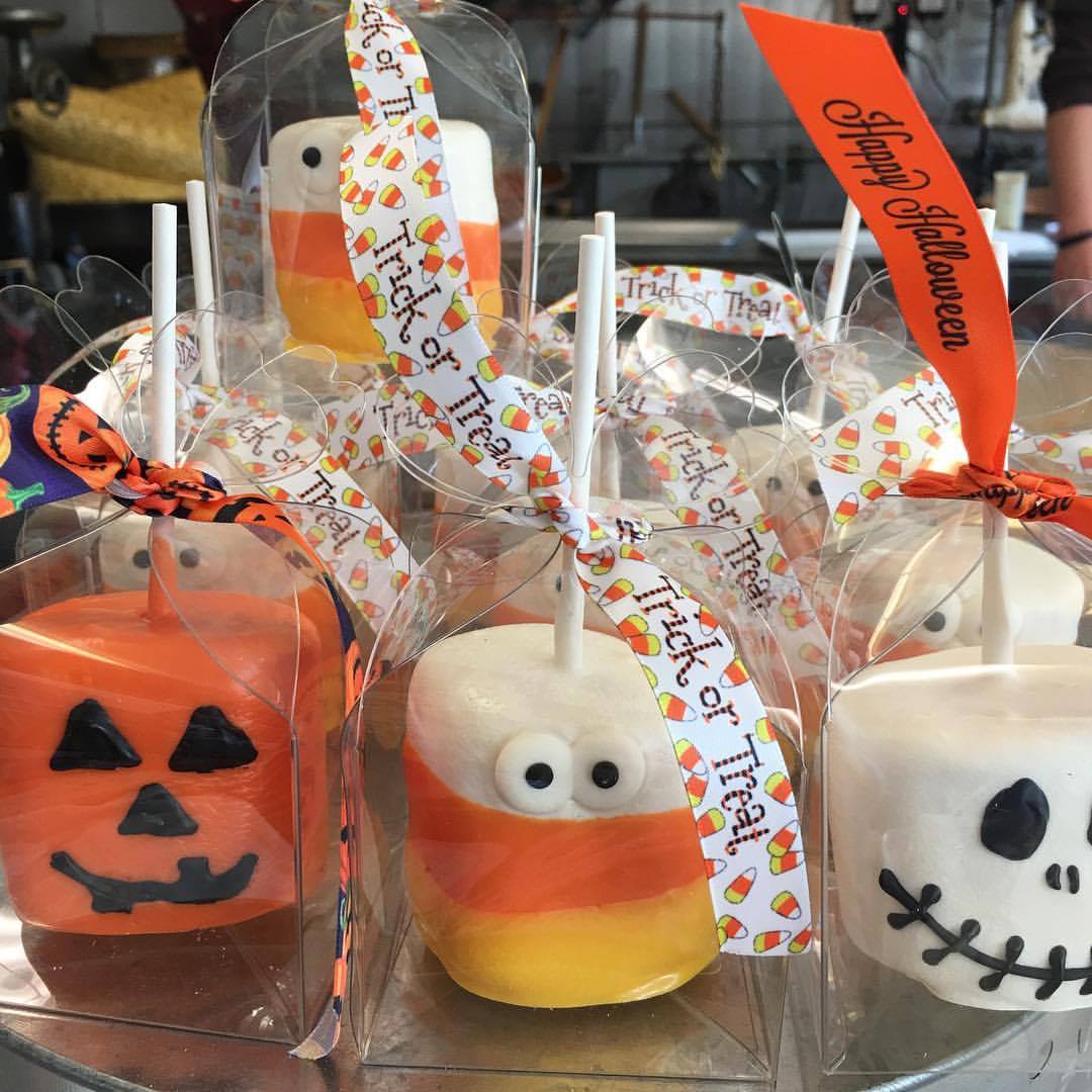 With this spooky sweet display of chocolate-covered marshmallow pops decorated as jack-o-lanterns, googly candy corn and skeletons from RCI member Bruce’s Candy Kitchen, how could you choose just one? Plus, we love how these marshmallow pops are packaged in folded acetate boxes and tied up with festive ribbons.