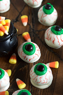 Your fans will scream with delight over these ghostly pretzels. To accomplish this look, cover bowtie pretzels with white chocolate, then pipe white chocolate into top two holes and embellish with candy eyeballs.