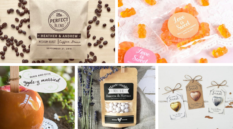 Sources: The Perfect Blend Coffee Favors; The Paper Shoppe CA/Etsy; Champagne Gummy Bear Favors, Beau Coup; Caramel Apple Favors, Evermine; Mint To Be Favors, The Kraft Moon/Etsy; Sweet Chocolate Heart Favors, Little Indie Studio/Etsy