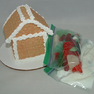 of graham crackers, a bag of icing "glue" and a bag of