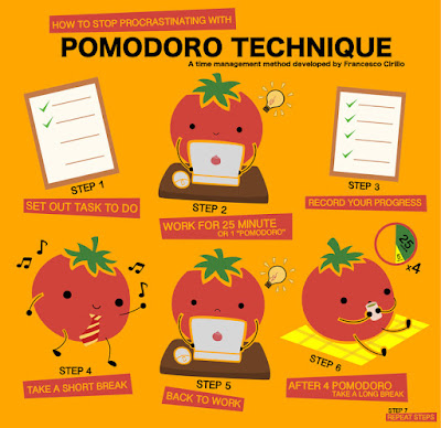 The Pomodoro Technique suggests working 25 consecutive minutes alternating with short five-minute breaks in between. The use of this technique has resulted in both increased performance and productivity.