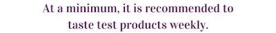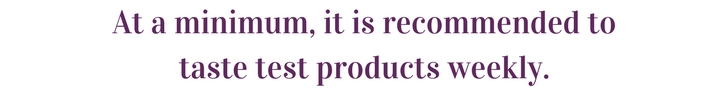 If you have a quality control manager, consider adding a consistent taste testing program to their routine. The frequency for taste testing may vary depending on how often you produce a particular product, but at least weekly would be the minimum recommendation.