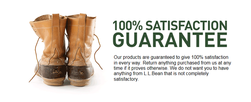 L.L. Bean’s 100% Satisfaction Guarantee is the pinnacle of their customer service efforts and appears on their website, in their catalogs, in their stores and on every single receipt. While this guarantee serves their customers very well, according to Liza it serves L.L. Bean very well by making their customers the best “vocal champions” of their customer service. Clearly, making this worth standing behind.