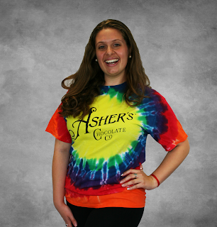 For the truest tie-dye enthusiasts, consider adding branded tie-die merch to your offerings, like these t-shirts from Asher's Chocolates.