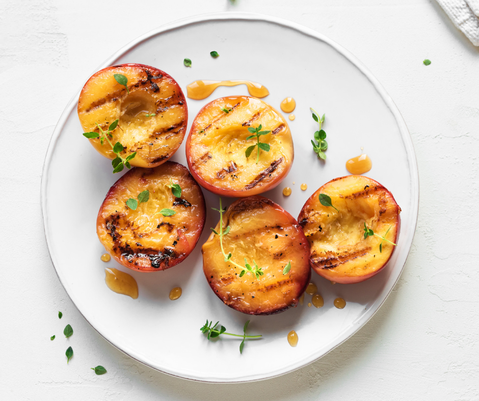 August is National Peach Month. Did you know the peach is actually a member of the rose family and originated in China? The two main varieties of peaches are (1) clingstone, which are characterized by flesh that sticks to the stone and (2) freestone know by flesh that is easily separated from the stone. When picking up peaches from the grocery store or farmers’ market, it’s safe to say green is definitely unripe, however, that rosy red color isn’t always an indicator of a peach’s ripeness. Different peach varieties have different amounts of red blush to their skin. According to the Illinois Farm Bureau, “the skin of yellow-fleshed varieties ripens to an orange tint, while the skin of white-fleshed varieties changes from greenish- to yellow-white.” Peaches with a slight give when pressed gently are ready to be used in the kitchen. Like many fruits, under-ripe peaches can be placed in a paper bag for two to three days to speed up the ripening process. Peaches are at their peak from June to the end of August, so if you’re looking for fresh ways to incorporate local peaches into your confections now is the time. Peach Pâte de Fruit Pâte de fruit, French for “fruit paste,” is a great vehicle for highlighting fresh fruits of any variety. Interested in making your own peach pâte de fruit? Click here for the recipe from The Spruce Eats. Grilled Peach S'mores