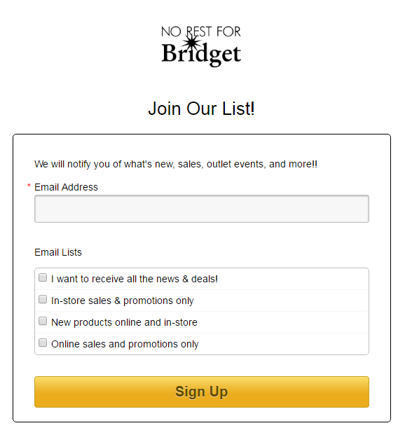 Adding a signup footer to the bottom of your website is a simple and less-intrusive option to build your email list. Many of your loyal customers may already be scrolling to the bottom of your website looking to easily subscribe to your email list.