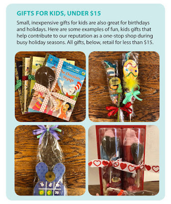 “We love putting together gift packages for our customers,” said Carrie Peart of Reid Candy and Nut Shop. “We sell lots of giftware, but the twist is it's always tied or packaged together with our chocolate or nuts. We package our products this way because it allows our customers to purchase gifts that give them something to eat and something to keep.” Repeat visits from customers shopping Reid’s assortment of gifts indicates this clever tactic is working. “We hope the giftware item will trigger the memory of the chocolate treats that came with it.”