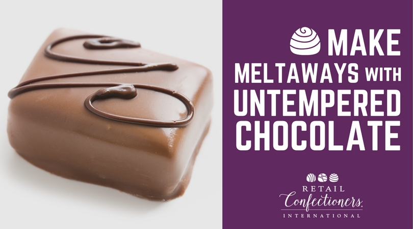 Consider this alternative method to making stable, smooth-textured meltaways with untempered chocolate. Instead of adding fat to tempered chocolate, combine untempered chocolate and coconut oil in a mixer. Mix at a slow speed until the temperature is below 78º F and has visibly thickened. Referred to as the “mixer method” in curriculum shared at RCI’s Chocolate Boot Camp®, it achieves the same desired stability and texture the meltaway is revered for, without the hassle of keeping temper.