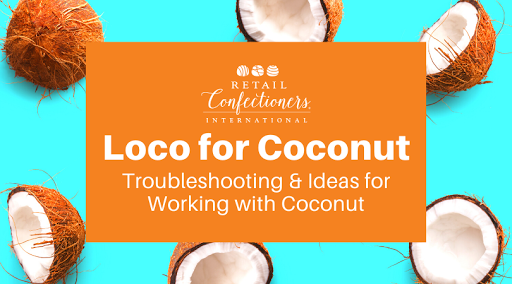 In honor of National Coconut Day on June 26, we’re sharing troubleshooting tips for working with coconut as well as inspiration for developing a new, craveable coconut candy that will make your fans go loco for coconut this summer! Coconut can come in many forms, but for confectioners, desiccated coconut is the most popular. Desiccated is defined as, “preserved by drying,” according to Merriam-Webster. The process of making desiccated coconutinvolves shredding unsweetened coconut meat that has been dehydrated and sifted to a range of different sizes. Shelf Life and Storage Desiccated coconut is a low-moisture, high-fat product. Approximately 3% moisture content is necessary for desiccated coconut to be shelf stable. If moisture content is 5% or above, dried coconut will mold and spoil rapidly. Poly bags are an effective barrier against moisture pick up in transit and storage. However, dry storage conditions for desiccated coconut is recommended to maximize shelf life. With a low moisture product, such as this, any candy formulation has to be adjusted for the drying effect of such an ingredient. An alternative to this formula adjustment, of course, the premoistening of the desiccated coconut before addition to the candy batch. Oil Separation The fat content of desiccated coconut is probably the most important single attribute. With almost two-thirds of its composition being coconut oil, with a melting point of 76°F/24.4°C, it is a factor to be seriously considered. Cool storage between 65-75°F/18.3-23.8°C is recommended. If stored above 76°F/24.4°C, under considerable stacking, oil separation can occur. This high-fat content also requires gentle handling and short mixing times for coconut candies so as to avoid the separation of coconut oil from the candy due to mechanical pressure. Solution: Despite the best efforts of candy makers in mixing and handling of coconut pastes, it is still possible to have separation occur during the forming operation. Almost every forming operation requires that a certain amount of pressure be applied to the coconut paste. There are formula modifications that can be made to minimize this fat separation, such as the addition of 0.5%-1% of glyceryl monosterate (GMS) to coconut paste. GMS should be added to coconut paste in liquid form to ensure even distribution throughout the batch. Addition of solid GMS to a cold batch could make the ingredient ineffective. Soapy Flavor The high-fat content in desiccated coconut can lead to the development of soapy flavor when spoiled. Coconut fat represented by the triglyceride molecules in the presence of enzymes secreted by microorganisms (molds or yeast) breaks down into mono diglycerides and free fatty acid. Since 48% of the free fatty acid radicals in coconut fat are lauric acid, you quickly get the characteristic soapy flavor that lauric acid imparts. Solution: The use of hot water or steam blanching desiccated coconut results in extremely low microbiological counts and drastically reduces the chances for this soapy flavor development. Yellowing Naturally occurring sugar and protein in coconut are responsible for the number one spoilage factor in this product: yellowing. Non-enzymatic browning, known as the Maillard reaction, gives coconut a yellow appearance is caused by the reaction between the natural sugars, particularly invert sugars and amino acids in the protein in coconut. Storage Once a candy maker has received desiccated coconut, it is important to always use the oldest stock first and store in the coolest possible location. At around 40°F/4.4˚C, you get an almost indefinite shelf life of coconut. Particle Size The tendency of a cut of desiccated coconut to yellow is almost directly related to its particle size—the larger the particle size, the greater the tendency to yellow. Extra fine or macaroon typically have the best whiteness retention, while slice and chip cuts, being cross sections of the coconut meat, yellow quickly on the inner surface. Coconut Recipe Ideas: Now that you’ve brushed up on your coconut knowledge, it’s time to get cooking—in the candy kitchen, that is. Here’s some inspiration for your next great coconut recipe. Toasted Coconut and Caramel Truffles
